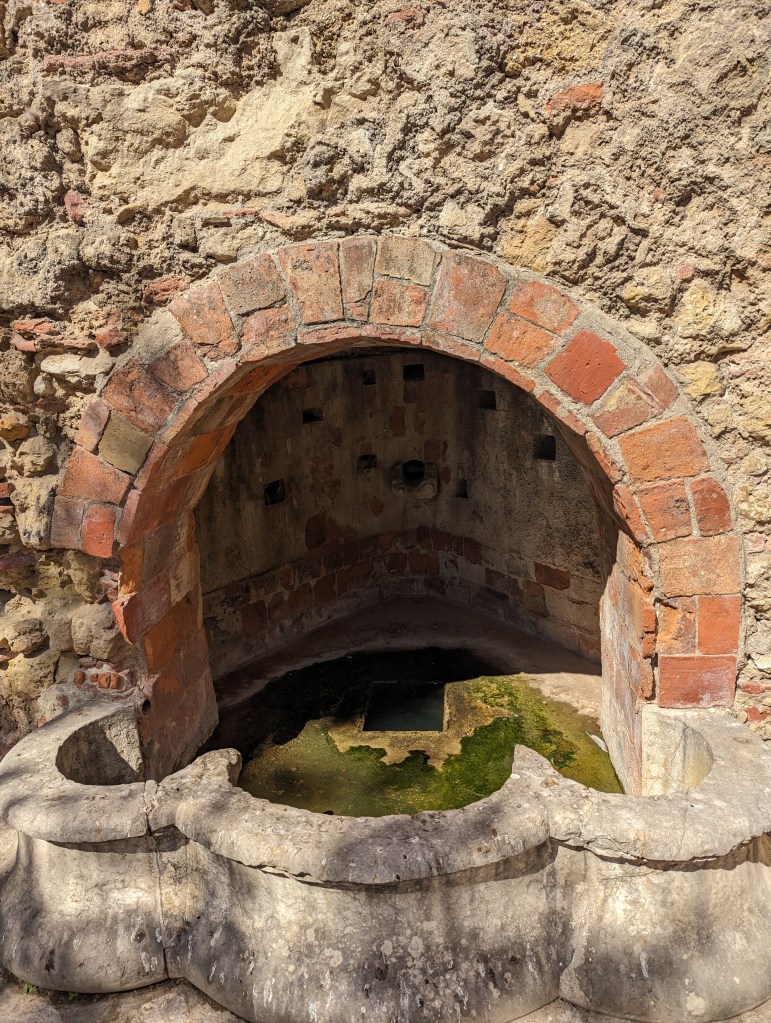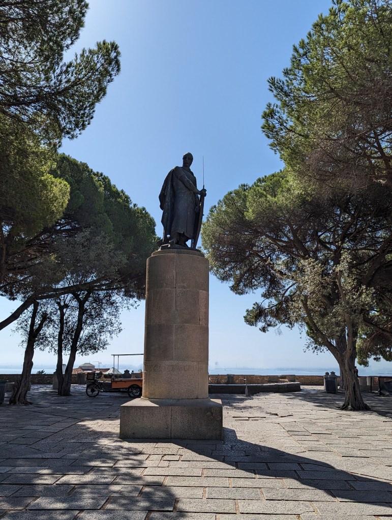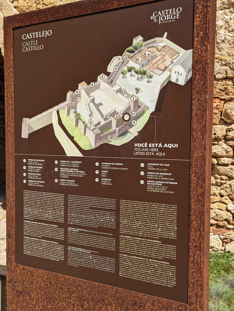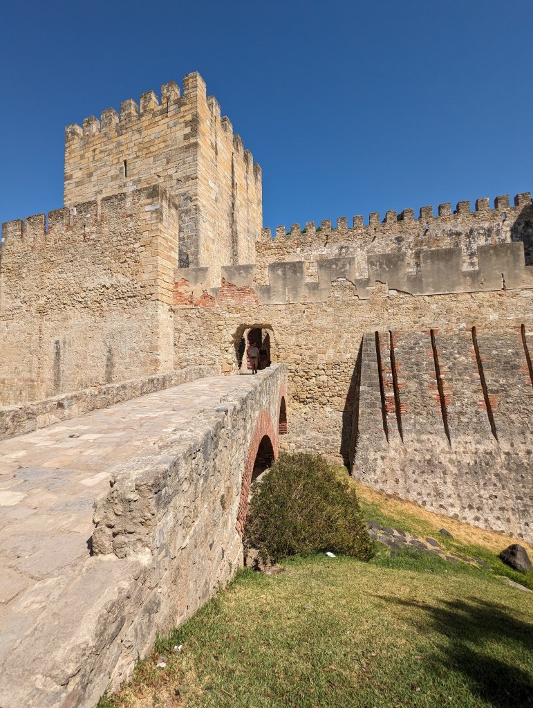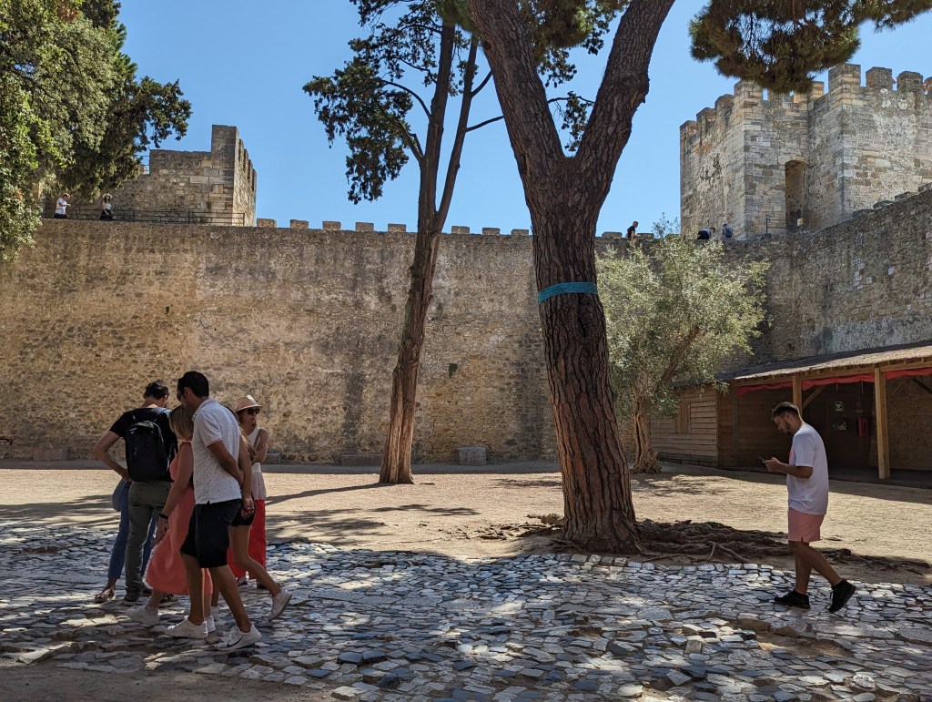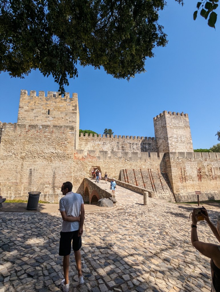 View from Castle St. Jorge (St. George and the Dragon)It was such a steep hike I don’t know how this castle could be easily seized.Peacocks roam the Castle grounds.And all up in the trees. Walk thru being aware of that.Multiple fountains and baths meaning they seemed to have plenty of water within the grounds.